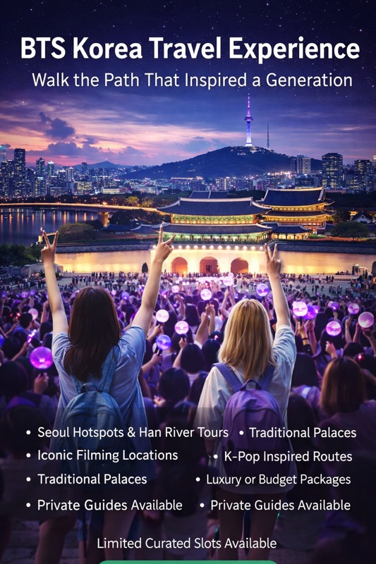 HanPrime Travel offers curated BTS-inspired Korea experiences designed for fans who want more than photos. This is about stepping into the atmosphere that shaped creativity, resilience, and ambition.